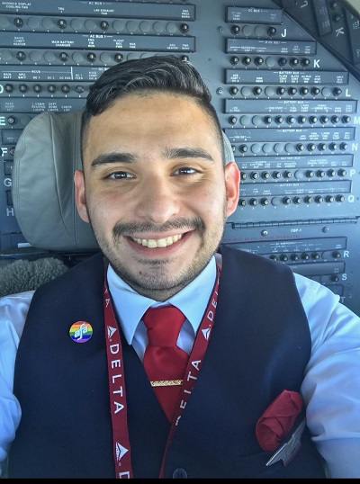“Happy Pride Month! I have never celebrated Pride Month, as I feel like everyone has their own way to celebrate. Since I became a flight attendant in 2018, I’ve noticed that this industry was the best choice for me. Even though I have a medical background, both careers have shown me that we can do anything without being a tag or label. My family, friends, and coworkers have shown me respect for who I am, for how I express and for how I treat others. Being different does not mean we don’t have the same opportunities than others. We all deserve to be loved and to give love because love always wins. A flag, a color, a country, a beat, or any other thing does not identify who you are. Your heart is the only one that shows the truth of who you are. Don’t let anybody label you however they want, just be yourself.” –Jose Portillo, FA, LGA