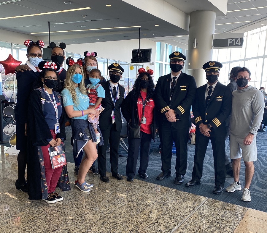 Endeavor was proud to be part of Bert’s Big Adventure (BBA) 2022! Each year, BBA provides an all-expenses-paid trip to Walt Disney World for children with chronic or terminal illness and their families. Since 2018, Endeavor has served as the official airline partner of BBA, operating the flights from Atlanta to Orlando and back with these very special “customers” on board. Due to safety precautions, this year’s BBA event was smaller and the families left from a gate at the ATL airport rather than the hangar, eliminating the need for Family Sponsors.
