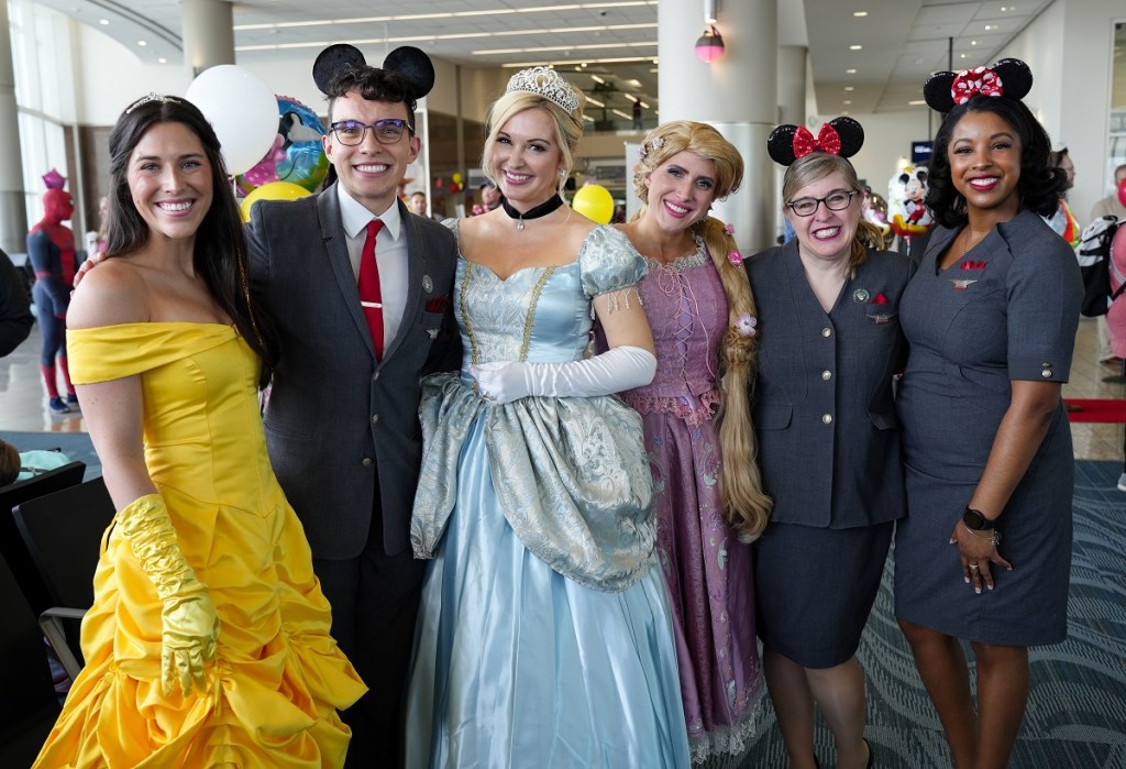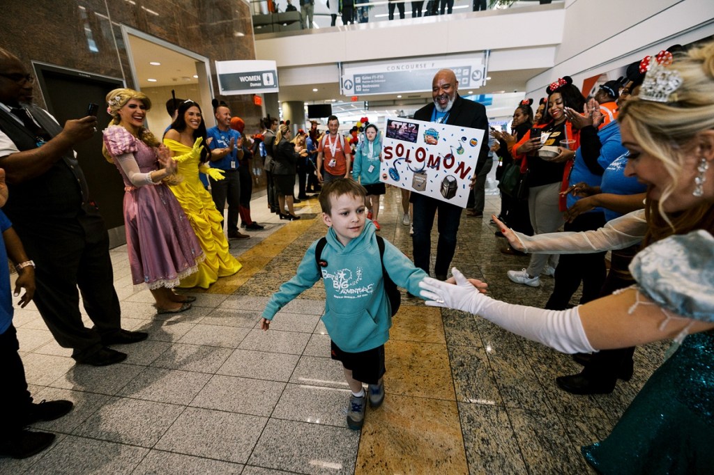 Before boarding the send-off flight, Endeavor employees and volunteers intermixed with Disney princesses and characters, holding signs and lining the pathway to the gate to give the BBA families a special experience from start to finish.