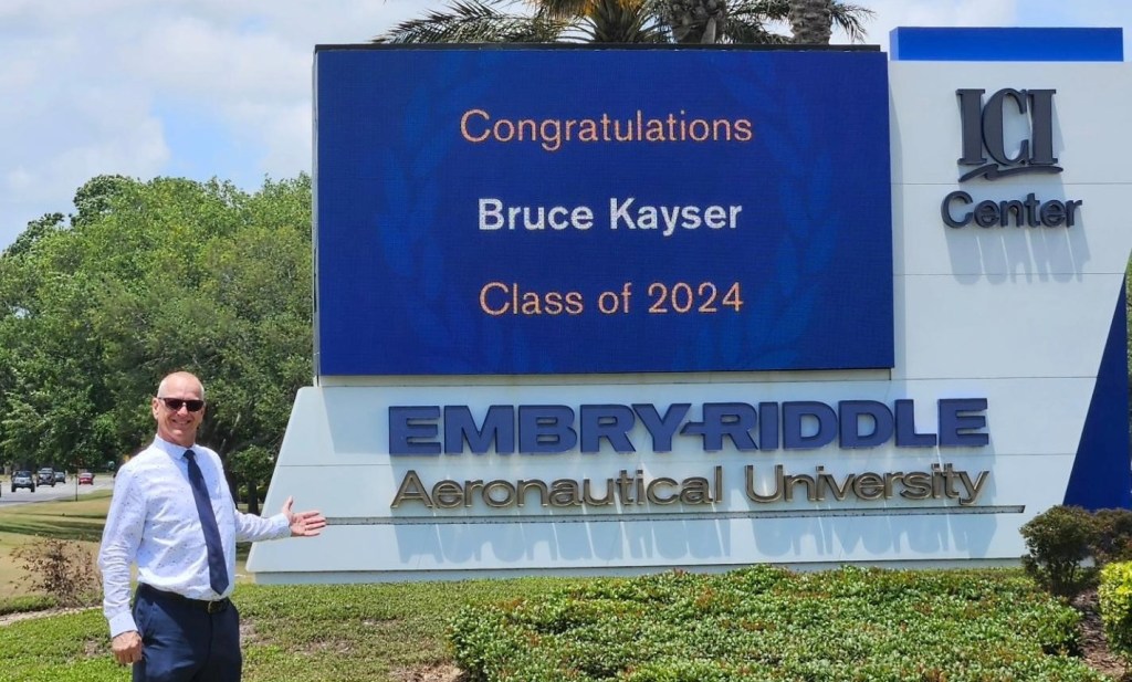 Bruce recently graduated from Embry-Riddle Aeronautical University with a bachelor’s degree in Aeronautical Science BS and a minor in Aviation Safety, an achievement that was 42 years in the making.