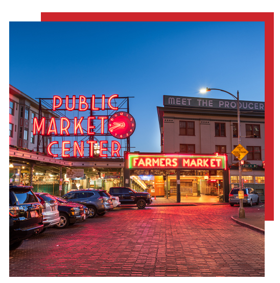 “For a quick day trip, I went to downtown Seattle. I took the Light Rail, walked 5 blocks to Pike Place Market and got in line at the original Starbucks store for my morning caffeine (probably round 2 or 3 at this point!) I grabbed a pastry at Piroshky Bakery, and shopped for fresh seafood. I did some grocery shopping – everything from produce to fresh seafood to cheese to pasta is available. After exploring the market and Pier, I took a ferry to Bainbridge Island.