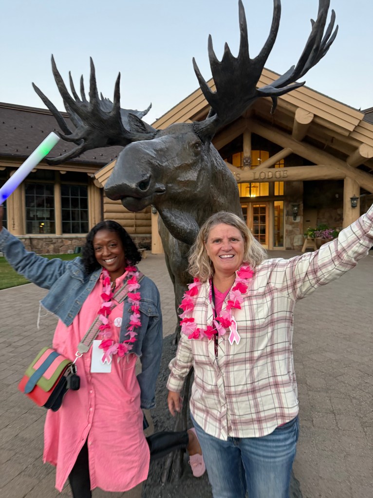 Once the plane landed in Salt Lake City, the VIP passengers were greeted with more cheers, hugs, and pink swag at the hotel, followed by a group dinner. It was a chance for the survivors to bond and share their stories.