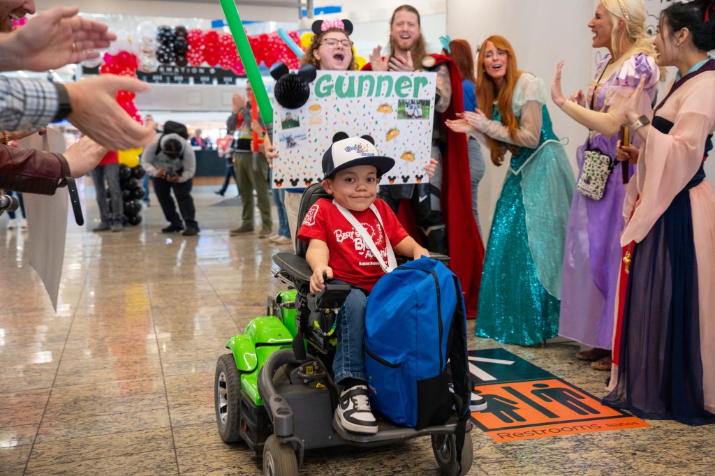 Escorted by Endeavor volunteers—along with a few surprise appearances from beloved Disney characters—the families made their way to the gate through a tunnel of cheers, high‑fives, and even a few inflatable lightsabers. The energy was electric, creating a heartfelt celebration filled with excitement, encouragement, and love.