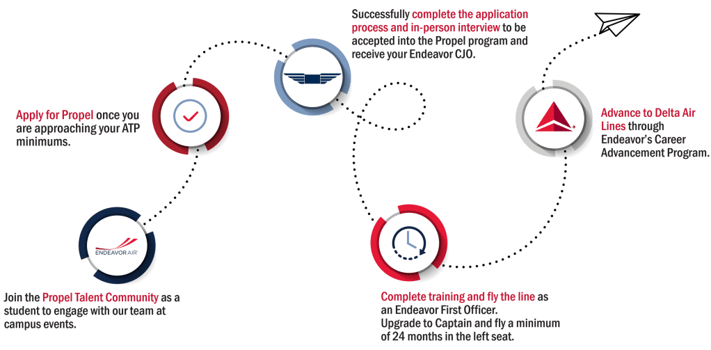 Endeavor Air and Delta Air Lines have integrated recruiting and pilot selection activities under the Propel brand, streamlining the journey to a Delta career. Propel offers a defined pilot career path for college students and CFIs who aspire to fly for Delta Air Lines.
